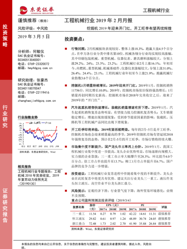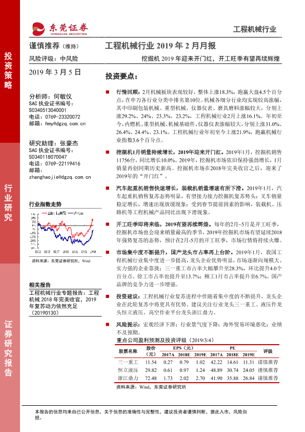 【东莞证券】【20190305】工程机械行业2019年2月月报:挖掘机2019年迎来开门红,开工旺季有望再续辉煌-12页