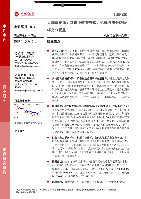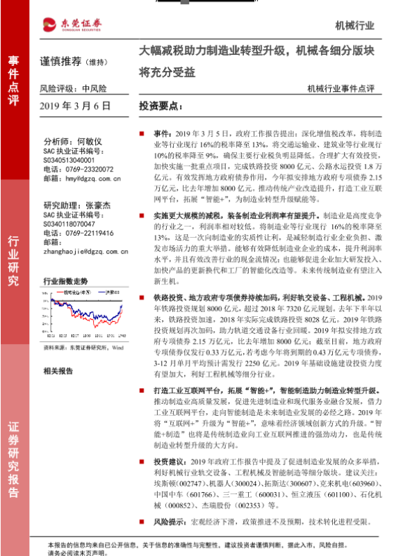 【东莞证券】【20190306】机械行业事件点评:大幅减税助力制造业转型升级,机械各细分版块将充分受益-2页