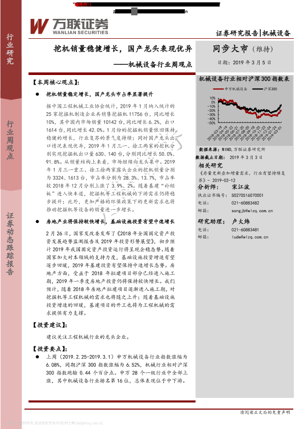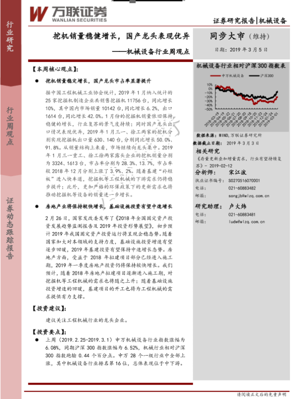 【万联证券】【20190305】20190305-万联证券-机械设备行业周观点:挖机销量稳健增长,国产龙头表现优异-10页