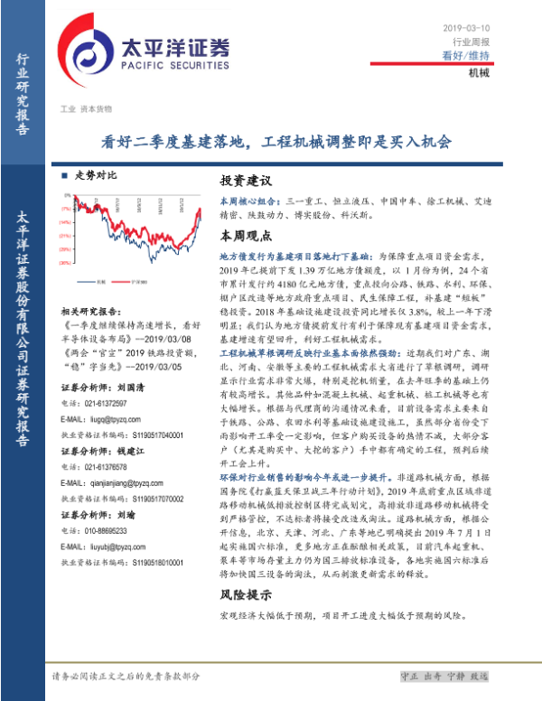 【太平洋证券】【20190310】20190310-太平洋-机械行业周报:看好二季度基建落地,工程机械调整即是买入机会-10页