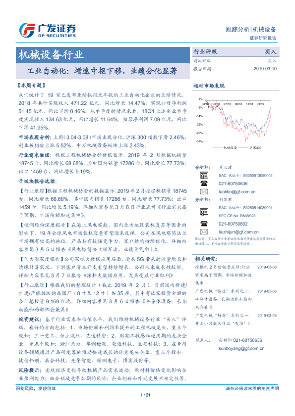 【广发证券】【20190310】工业自动化:增速中枢下移,业绩分化显著-21页