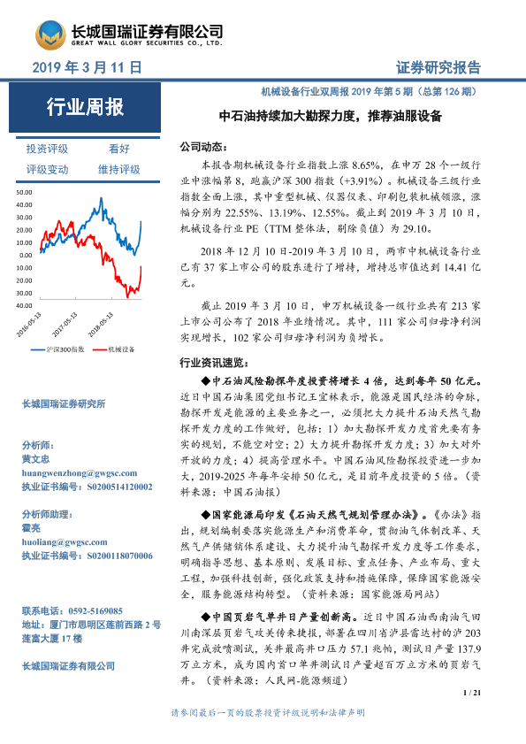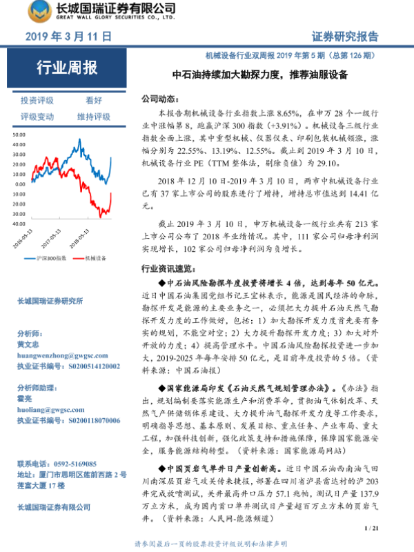 【长城国瑞证券】【20190311】机械设备行业双周报2019年第5期(总第126期):中石油持续加大勘探力度,推荐油服设备-21页