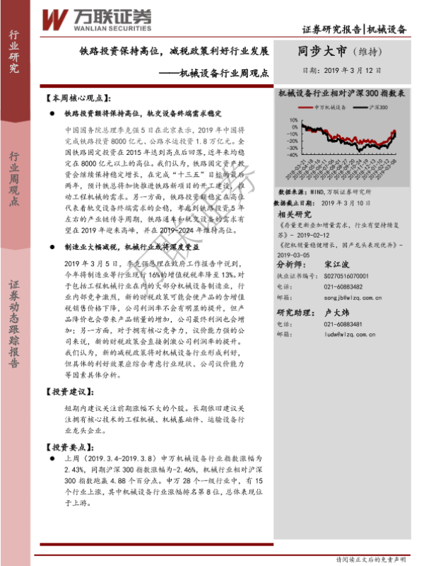 【万联证券】【20190312】20190312-万联证券-机械设备行业周观点:铁路投资保持高位,减税政策利好行业发展-10页