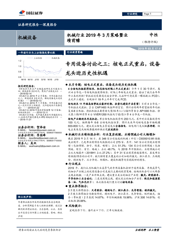【国信证券】【20190317】机械行业2019年3月策略暨业绩前瞻:专用设备讨论之三:核电正式重启,设备龙头迎历史性机遇-20页