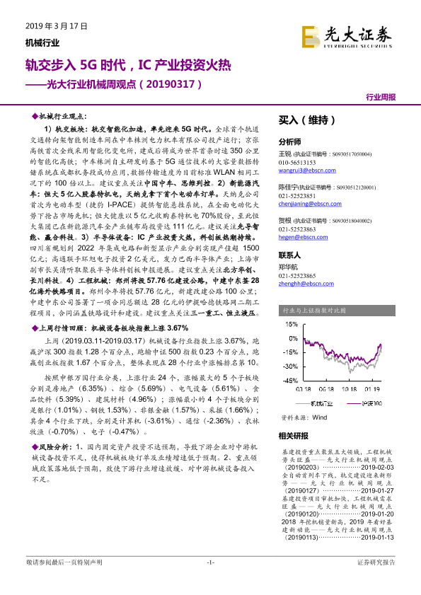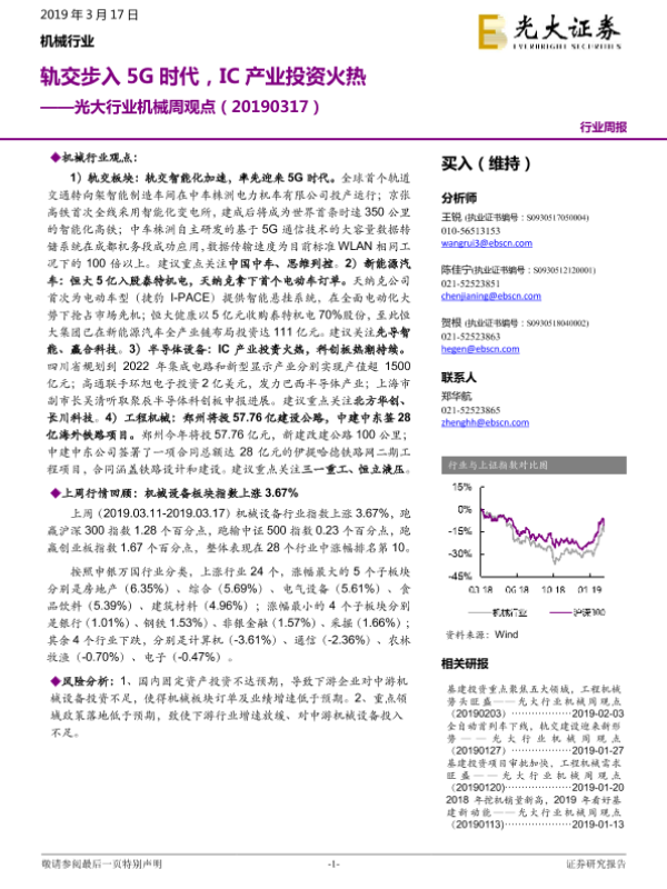 【光大证券】【20190317】光大行业机械周观点:轨交步入5G时代,IC产业投资火热-14页