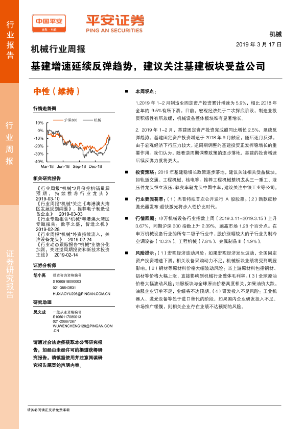 【平安证券】【20190317】20190317-平安证券-机械行业周报:基建增速延续反弹趋势,建议关注基建板块受益公司-4页