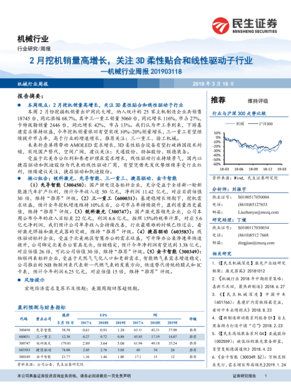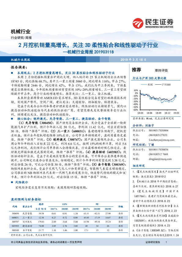 【民生证券】【20190318】20190318-民生证券-机械行业周报:2月挖机销量高增长,关注3D柔性贴合和线性驱动子行业-17页