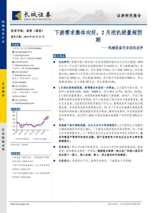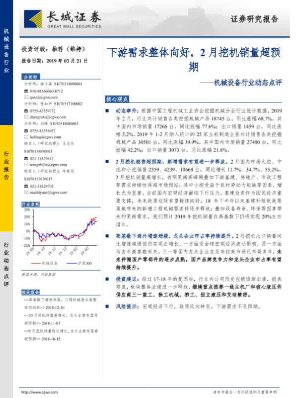 【长城证券】【20190321】20190321-长城证券-机械设备行业动态点评:下游需求整体向好,2月挖机销量超预期-2页
