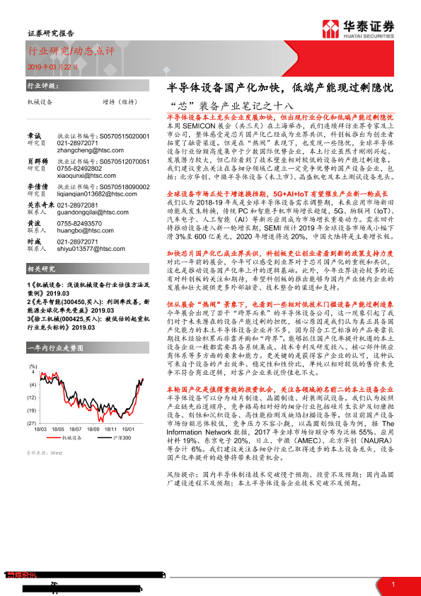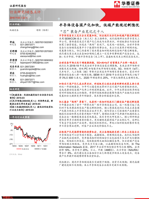 【华泰证券】【20190322】“芯”装备产业笔记之十八:半导体设备国产化加快,低端产能现过剩隐忧-2页