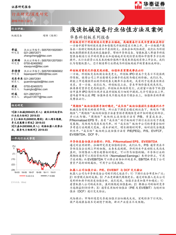 【华泰证券】【20190322】20190322-华泰证券-华泰科创板系列报告:浅谈机械设备行业估值方法及案例-26页