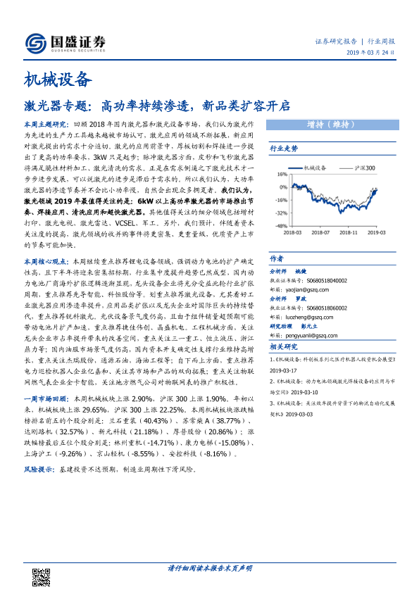 【国盛证券】【20190324】20190324-国盛证券-机械设备行业周报:激光器专题:高功率持续渗透,新品类扩容开启-28页