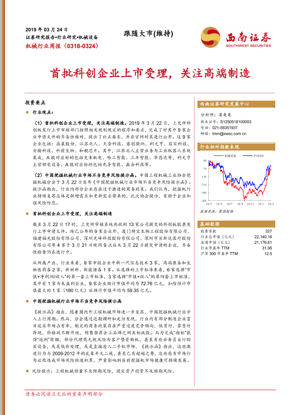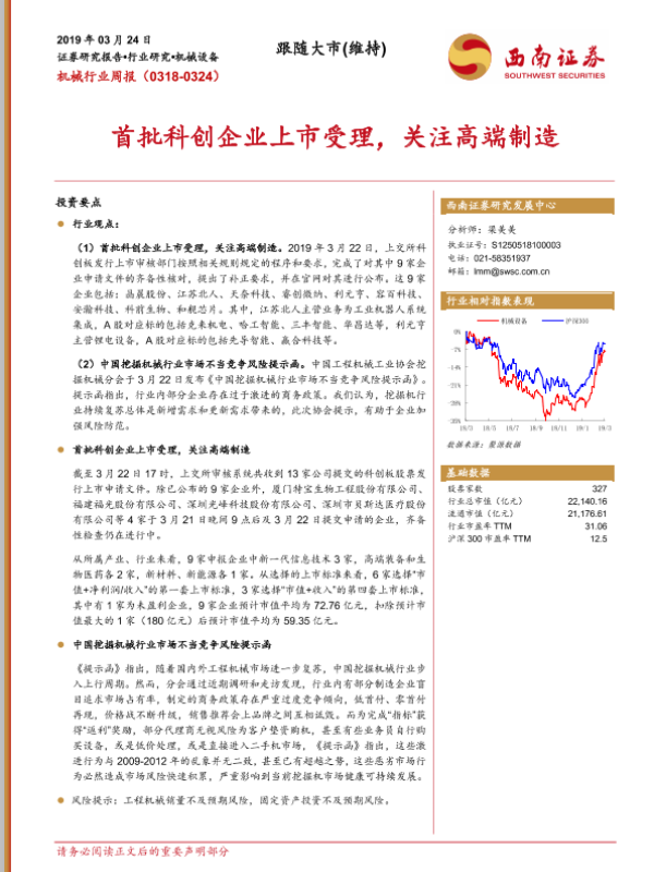 【西南证券】【20190324】机械行业周报:首批科创企业上市受理,关注高端制造-11页