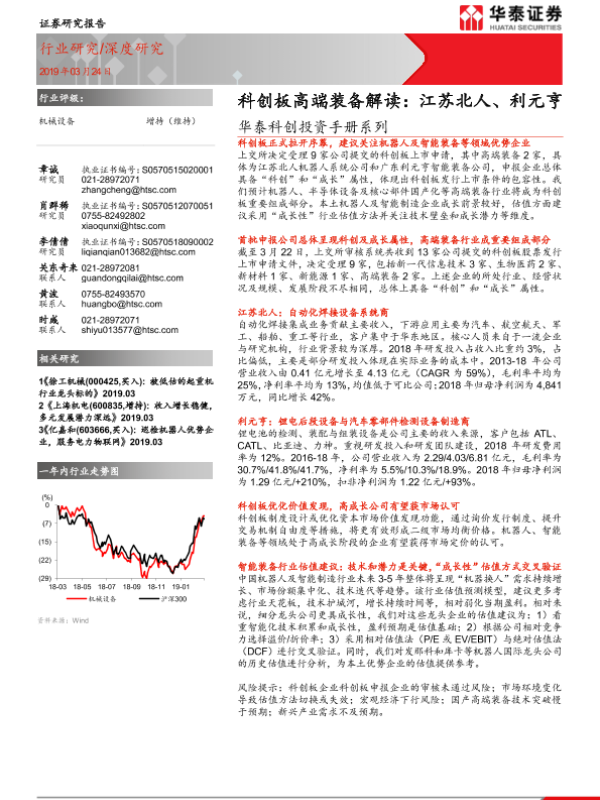 【华泰证券】【20190324】机械设备深度研究:华泰科创投资手册系列-科创板高端装备解读:江苏北人、利元亨-26页