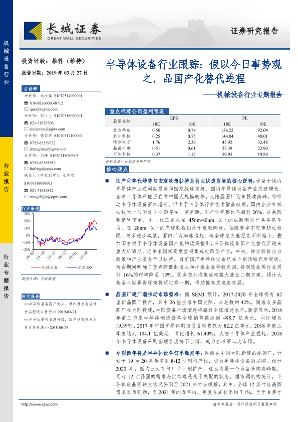 【长城证券】【20190327】20190327-长城证券-机械设备行业专题报告:半导体设备行业跟踪:假以今日事势观之,品国产化替代进程-21页