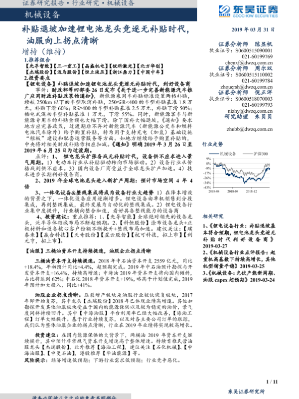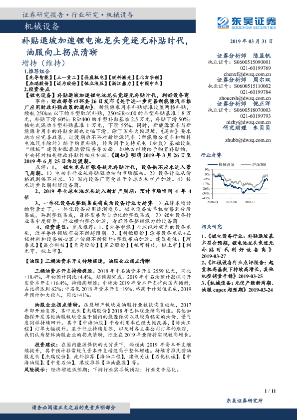 【东吴证券】【20190331】补贴退坡加速锂电池龙头竞逐无补贴时代,油服向上拐点清晰-11页