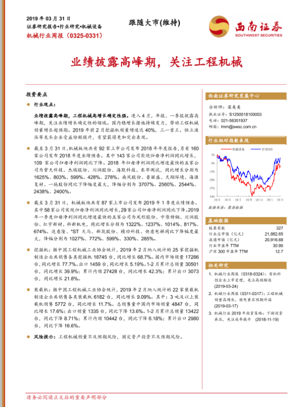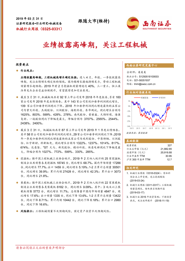 【西南证券】【20190331】20190331-西南证券-机械行业周报:业绩披露高峰期,关注工程机械-12页