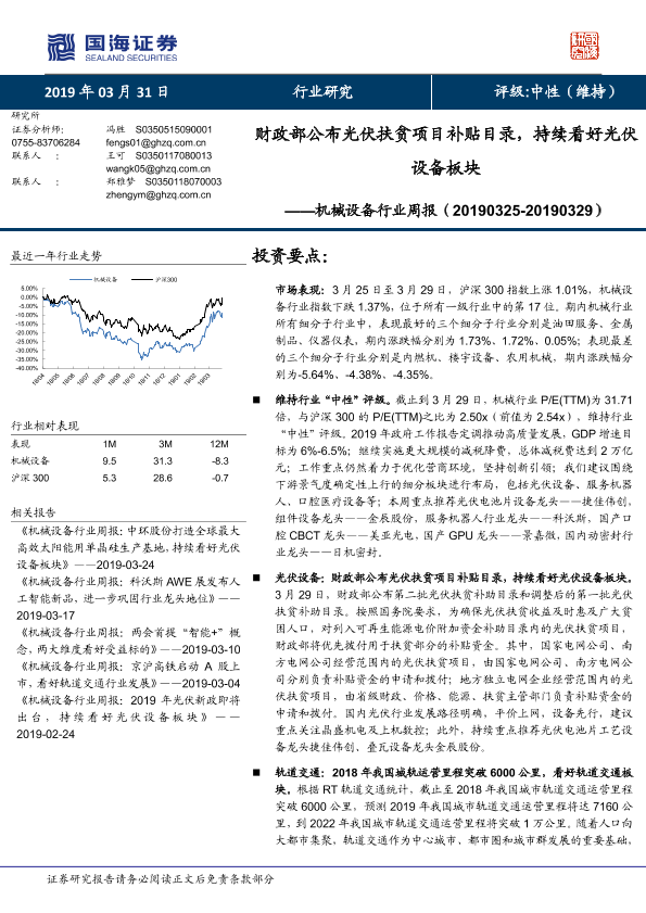 【国海证券】【20190331】机械设备行业周报:财政部公布光伏扶贫项目补贴目,持续看好光伏设备板块-24页