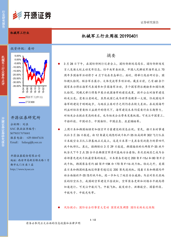 军工行业 国防建设 股票投资 行业周报 证券分析