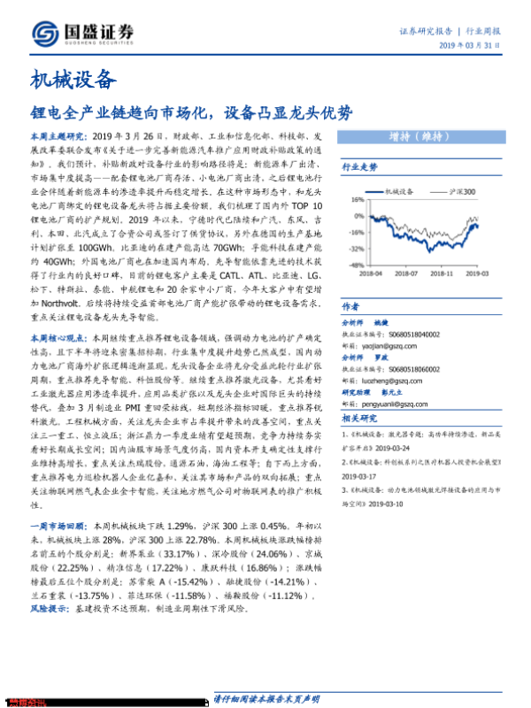 【国盛证券】【20190331】机械设备行业:锂电全产业链趋向市场化,设备凸显龙头优势-19页
