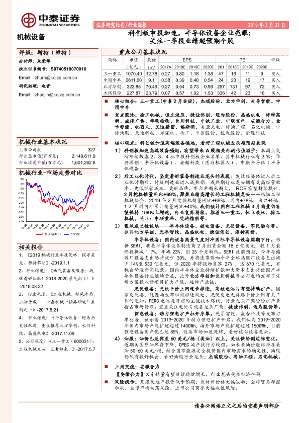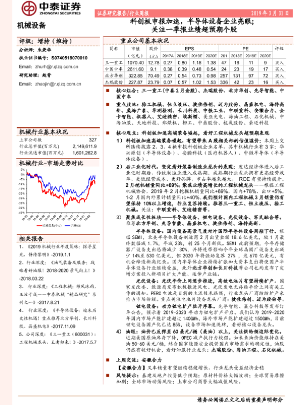 【中泰证券】【20190331】20190331-中泰证券-机械设备行业周报:科创板申报加速,半导体设备企业亮眼;关注一季报业绩超预期个股-20页