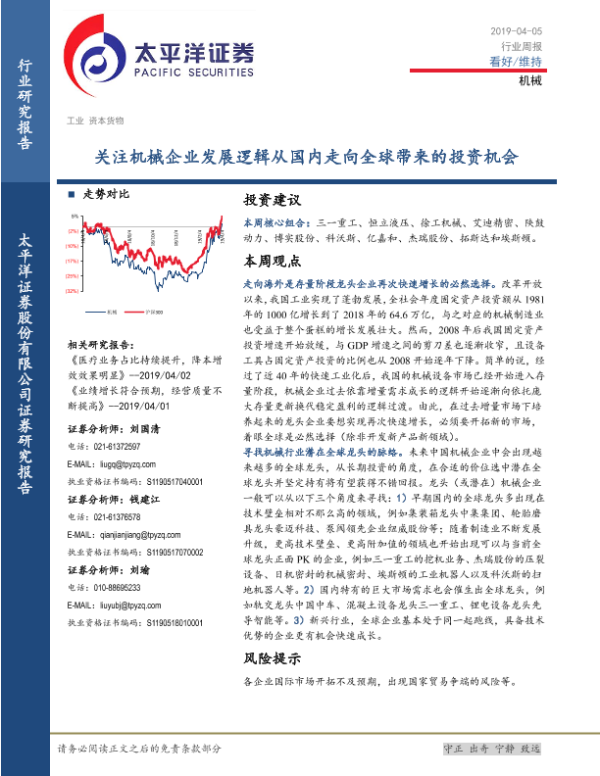 【太平洋证券】【20190405】20190405-太平洋-机械行业周报:关注机械企业发展逻辑从国内走向全球带来的投资机会-9页