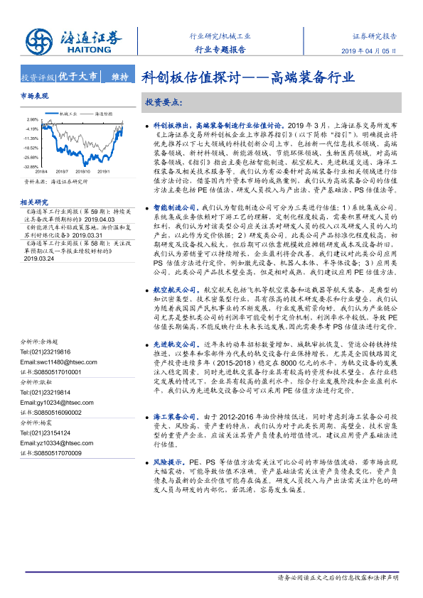 【海通证券】【20190405】机械工业行业专题报告:高端装备行业:科创板估值探讨-9页
