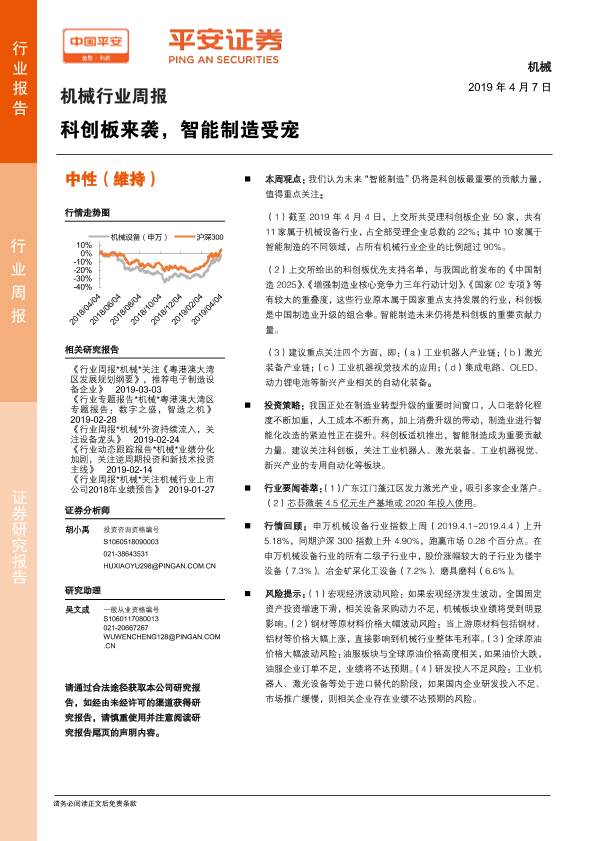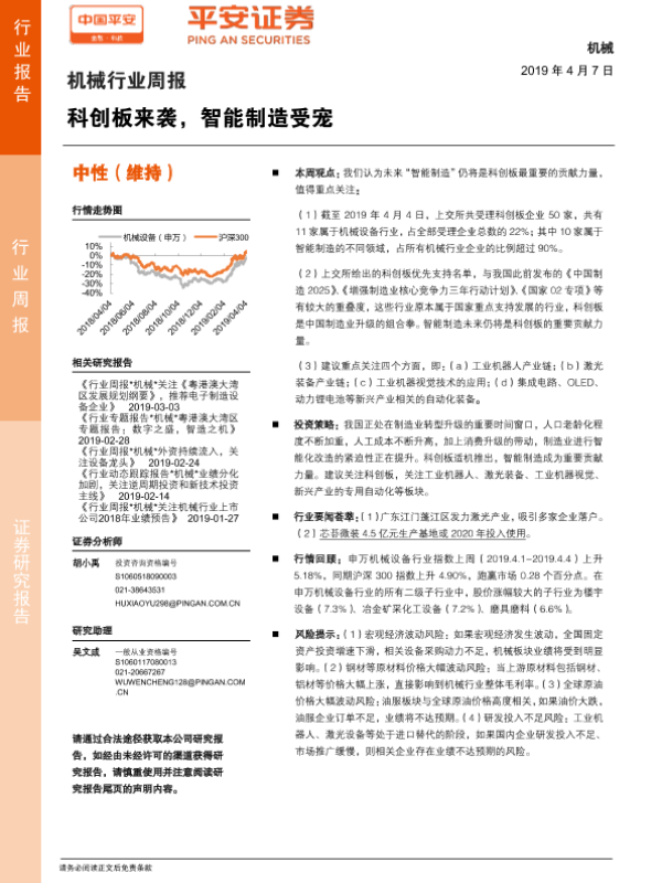 【平安证券】【20190407】机械行业周报:科创板来袭,智能制造受宠-5页