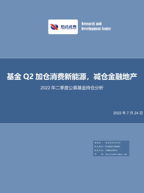 【信达证券】【20220724】2022年二季度公募基金持仓分析:基金Q2加仓消费新能源,减仓金融地产-22页