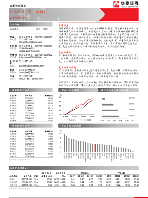 【华泰证券】【20190407】20190407-华泰证券-机械设备行业周报(第十四周)-15页