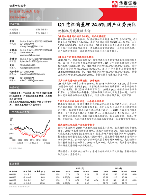 【华泰证券】【20190408】20190408-华泰证券-挖掘机月度数据点评:Q1挖机销量增24.5%,国产优势强化-6页