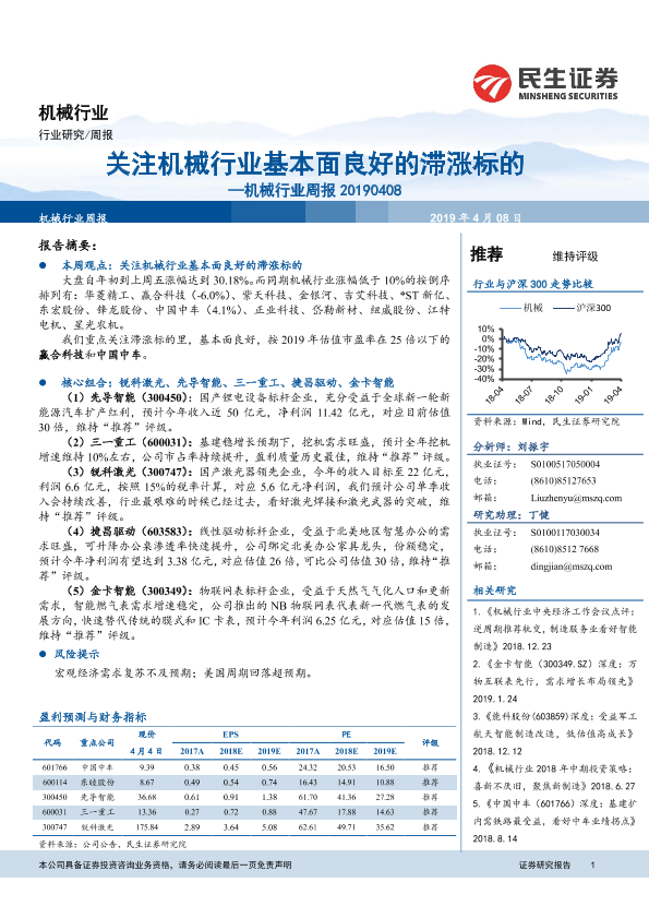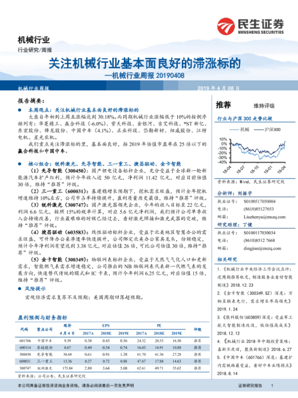 【民生证券】【20190408】20190408-民生证券-机械行业周报:关注机械行业基本面良好的滞涨标的-15页