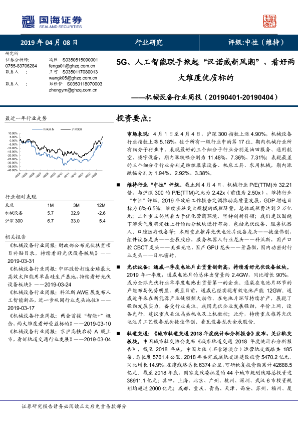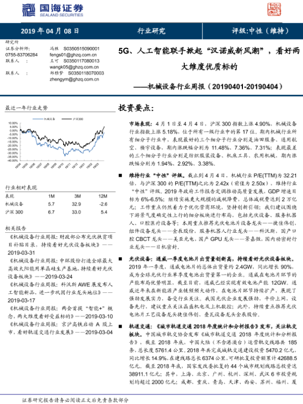 【国海证券】【20190408】20190408-国海证券-机械设备行业周报:5G、人工智能联手掀起“汉诺威新风潮”,看好两大维度优质标的-24页