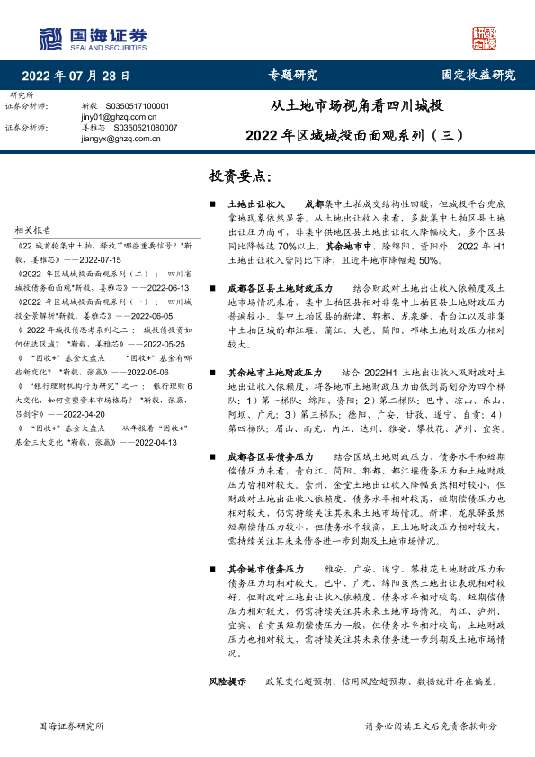 【国海证券】【20220728】2022年区域城投面面观系列(三):从土地市场视角看四川城投-15页