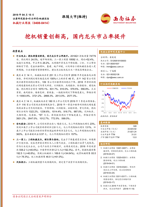 【西南证券】【20190415】机械行业周报:挖机销量创新高,国内龙头市占率提升-13页