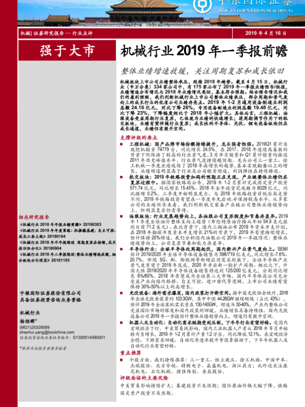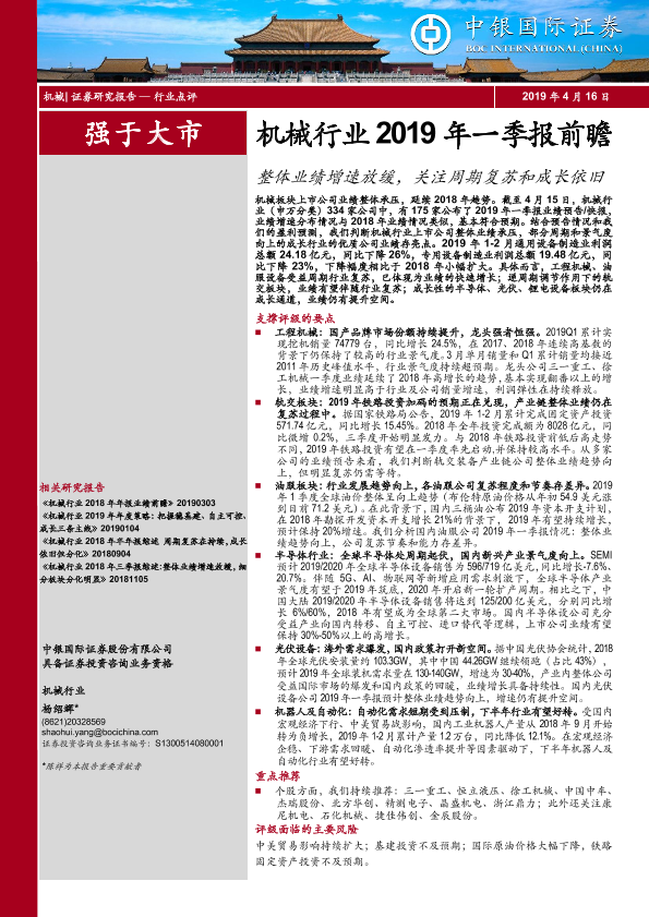 【中银证券】【20190416】机械行业2019年一季报前瞻:整体业绩增速放缓,关注周期复苏和成长依旧-14页