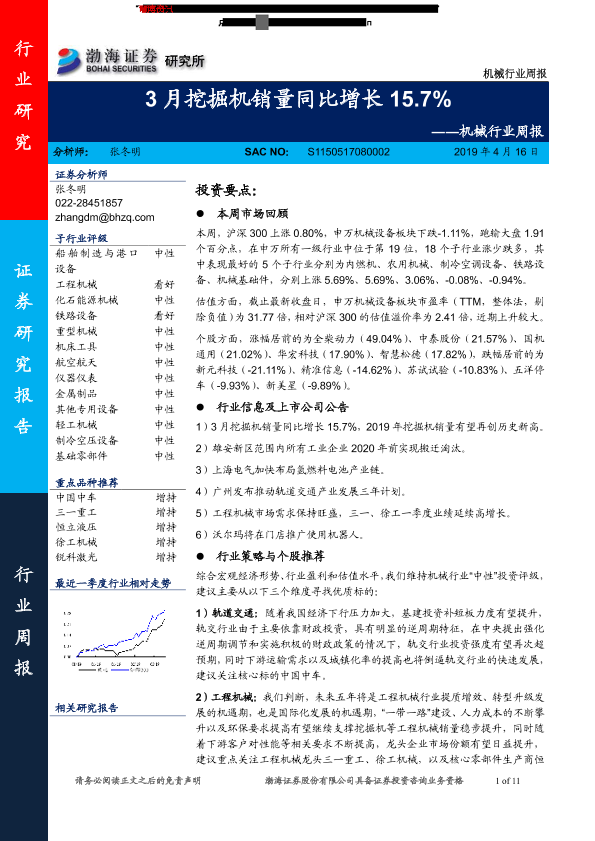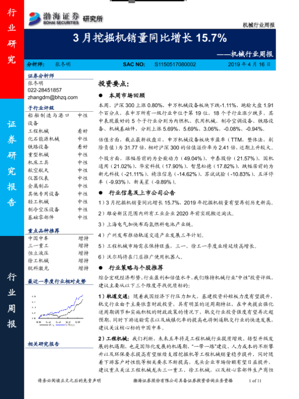 【渤海证券】【20190416】机械行业周报:3月挖掘机销量同比增长15.7%-11页