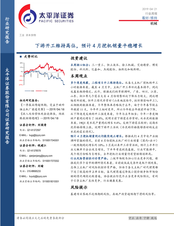 【太平洋证券】【20190421】20190421-太平洋-机械行业周报:下游开工维持高位,预计4月挖机销量平稳增长-10页