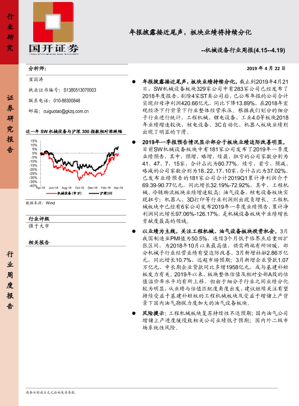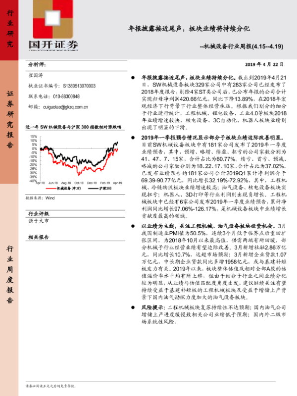 【国开证券】【20190422】机械设备行业周报:年报披露接近尾声,板块业绩将持续分化-9页