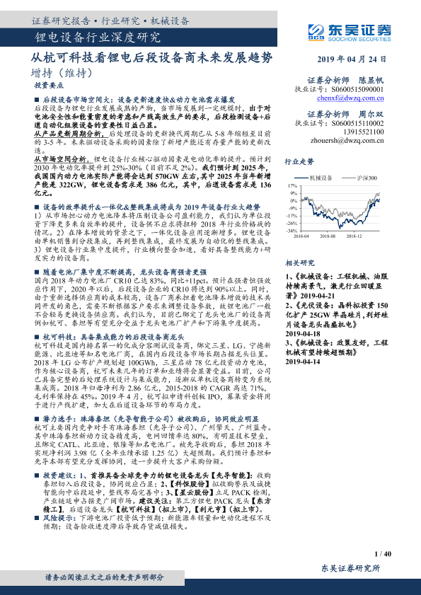 【东吴证券】【20190424】锂电设备行业深度研究:从杭可科技看锂电后段设备商未来发展趋势-40页