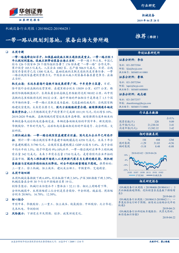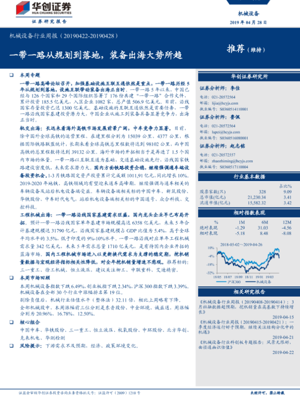 【华创证券】【20190428】20190428-华创证券-机械设备行业周报:一带一路从规划到落地,装备出海大势所趋-26页
