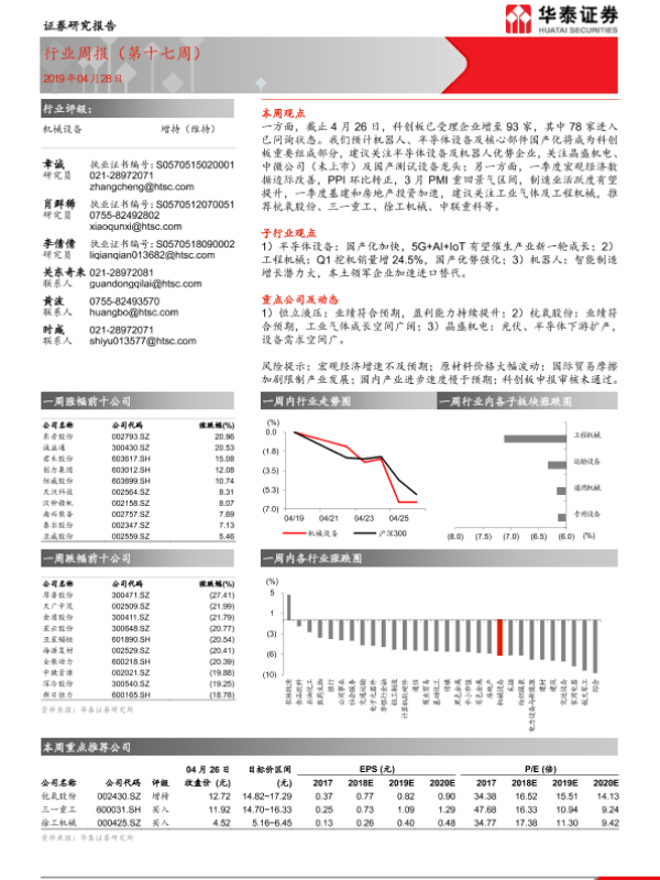 【华泰证券】【20190428】20190428-华泰证券-机械设备行业周报(第十七周)-17页