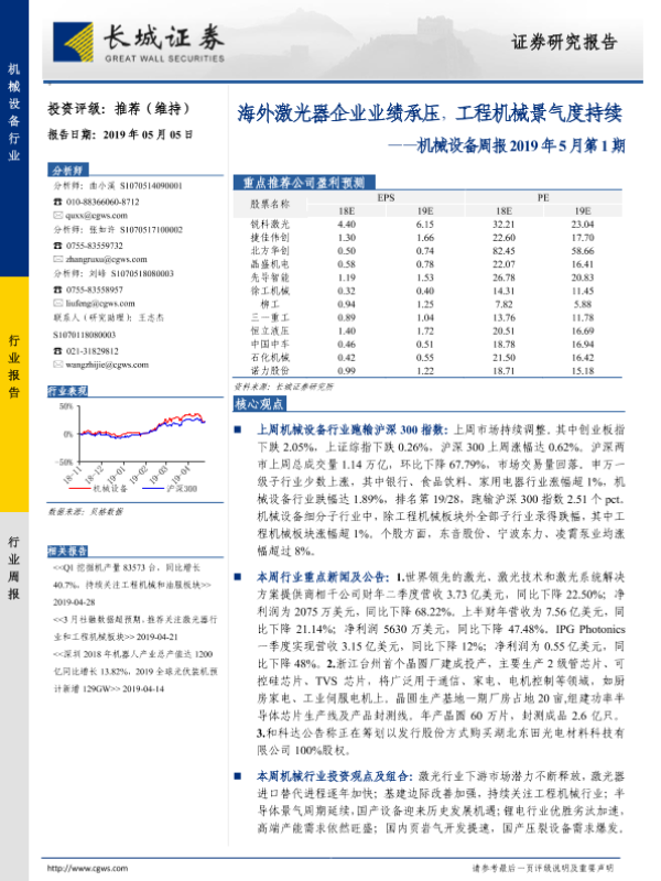 【长城证券】【20190505】海外激光器企业业绩承压,工程机械景气度持续-12页
