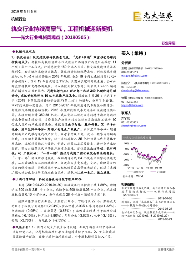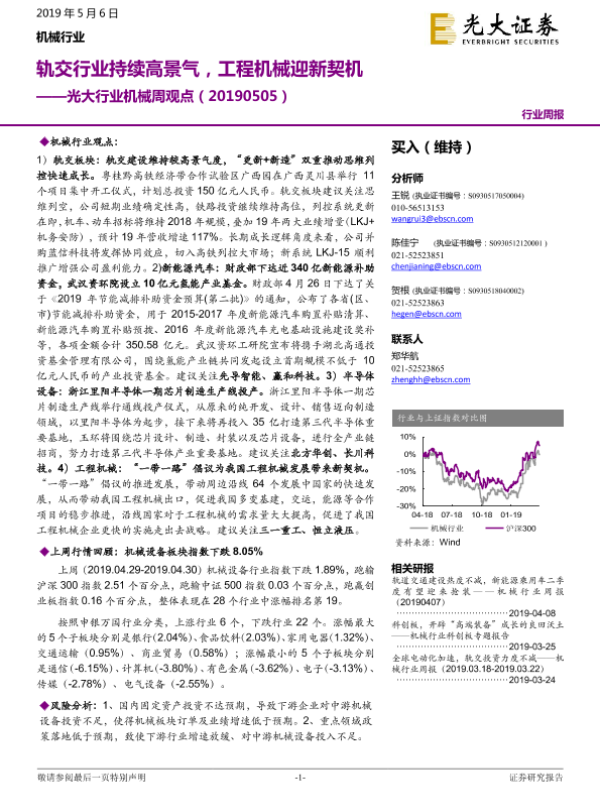 【光大证券】【20190506】光大行业机械周观点:轨交行业持续高景气,工程机械迎新契机-9页