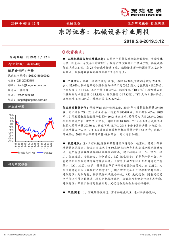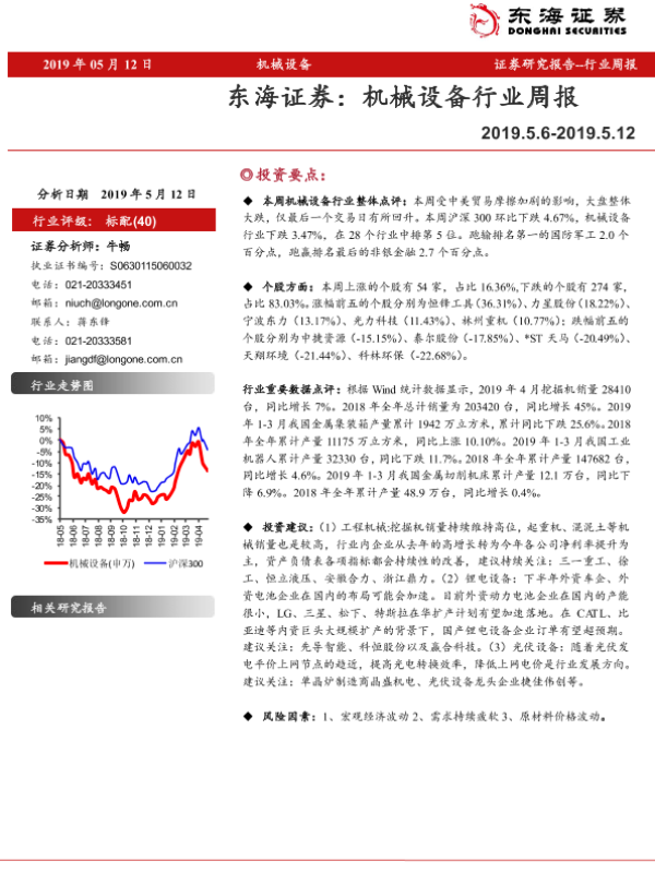 【东海证券】【20190512】2019年 05月 12日 机械设备 证券研究报告--行业周报-10页