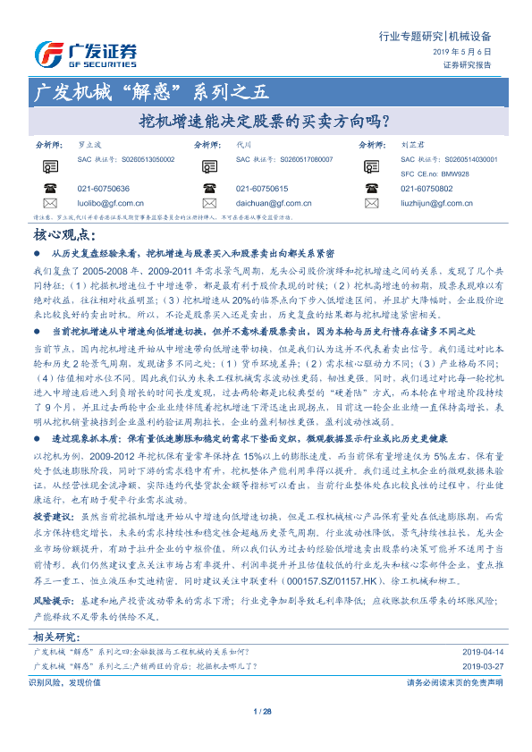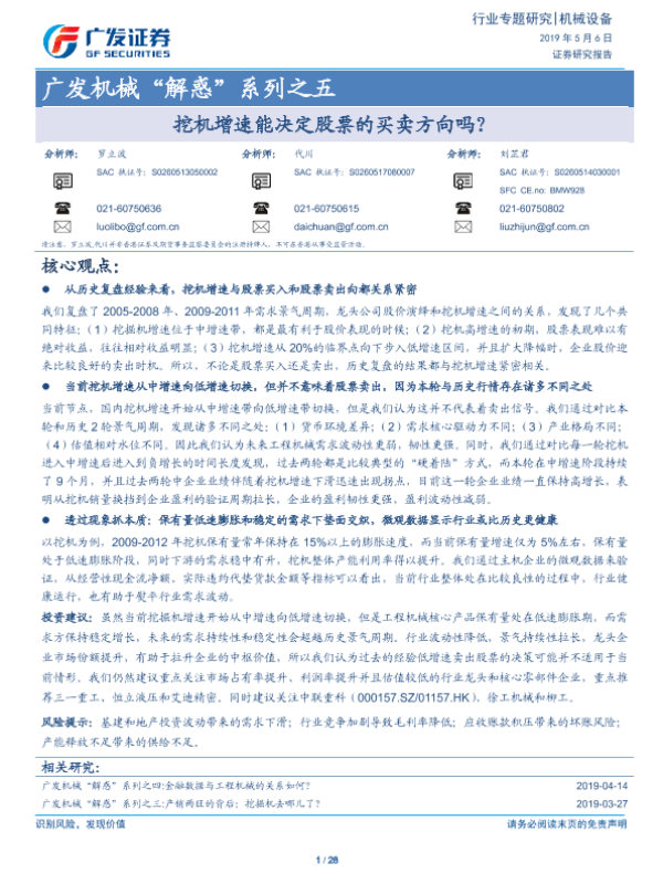 【广发证券】【20190506】广发机械“解惑”系列之五:挖机增速能决定股票的买卖方向吗?-28页