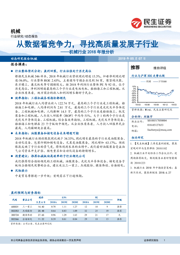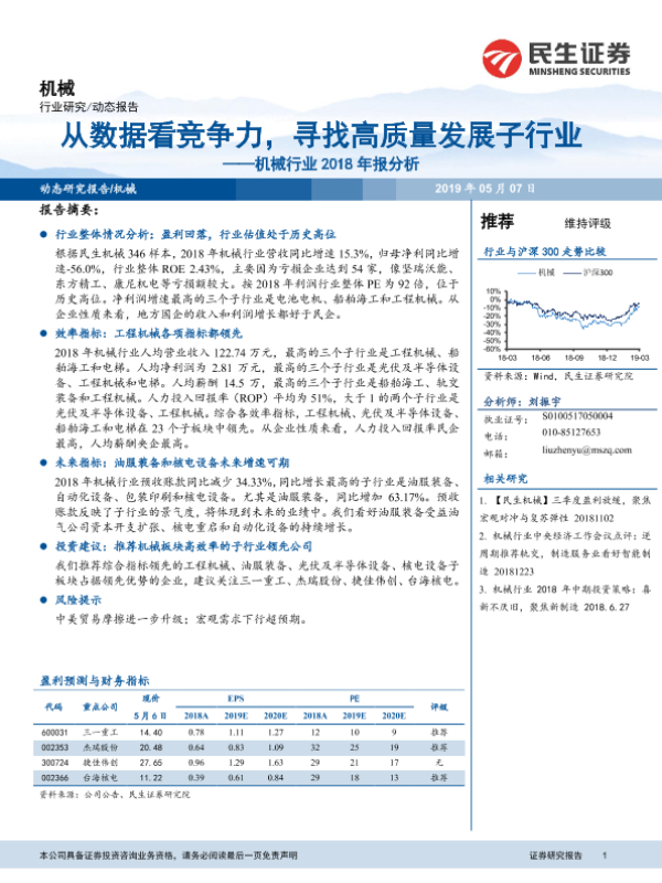 【民生证券】【20190507】机械行业2018年报分析:从数据看竞争力,寻找高质量发展子行业-10页
