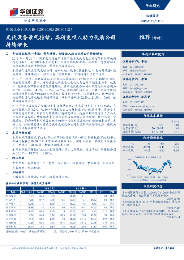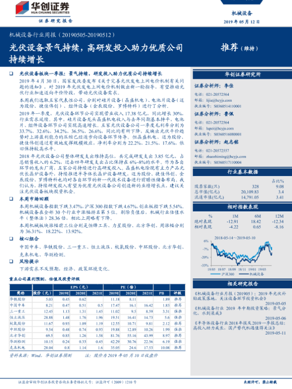 【华创证券】【20190512】20190512-华创证券-机械设备行业周报:光伏设备景气持续,高研发投入助力优质公司持续增长-22页