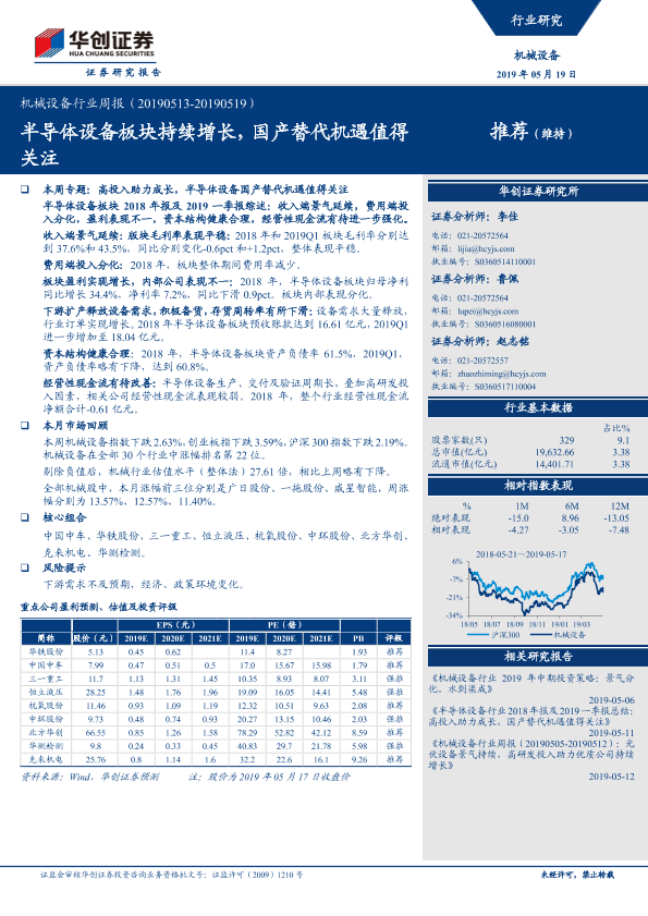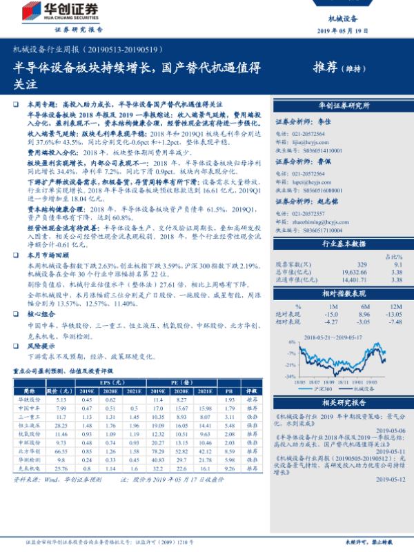 【华创证券】【20190519】20190519-华创证券-机械设备行业周报:半导体设备板块持续增长,国产替代机遇值得关注-22页