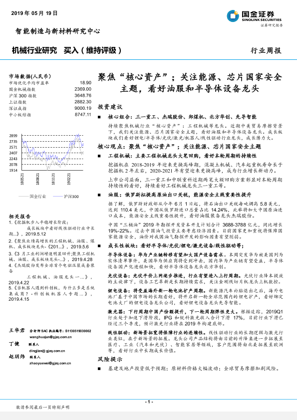 【国金证券】【20190519】20190519-国金证券-机械行业研究:聚焦“核心资产”;关注能源、芯片国家安全主题,看好油服和半导体设备龙头-18页