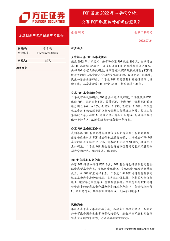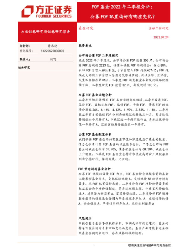 【方正证券】【20220724】FOF基金2022年二季报分析:公募FOF配置偏好有哪些变化?-18页